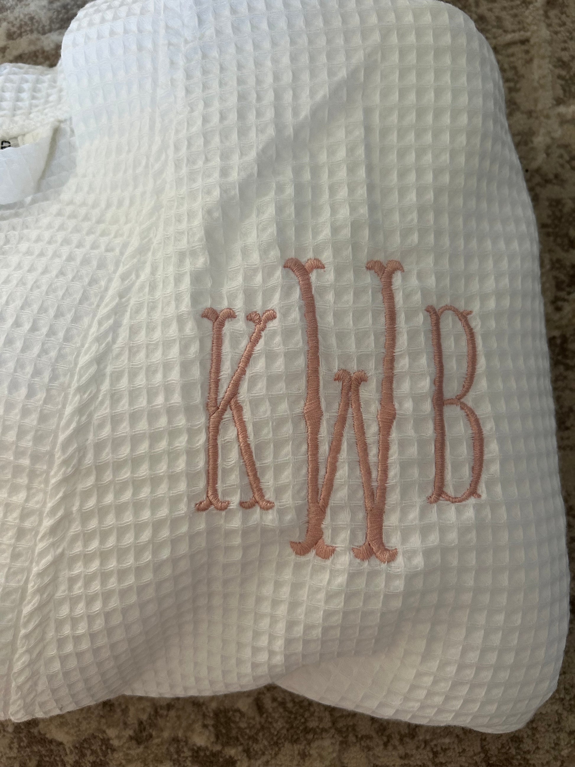 Enter details exactly as you want them embroidered. (ex: Name: Alex, Font: Script, Color: Gold).